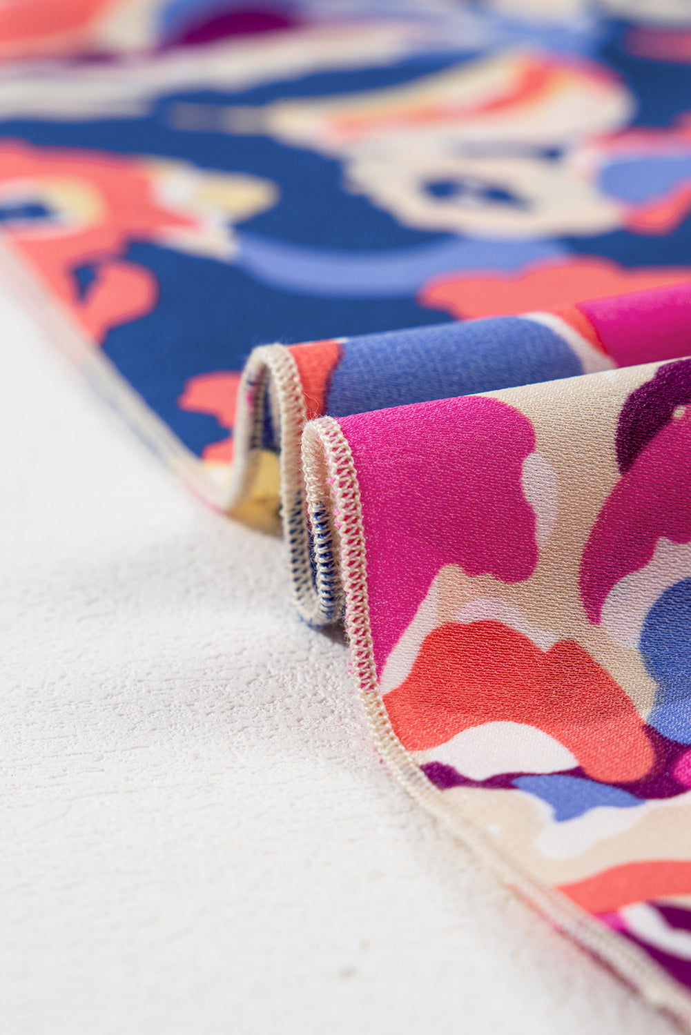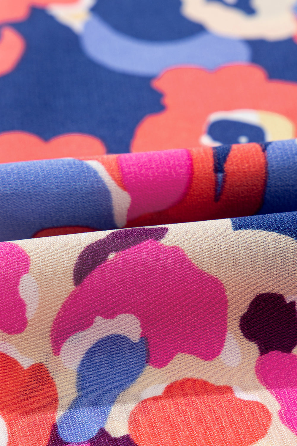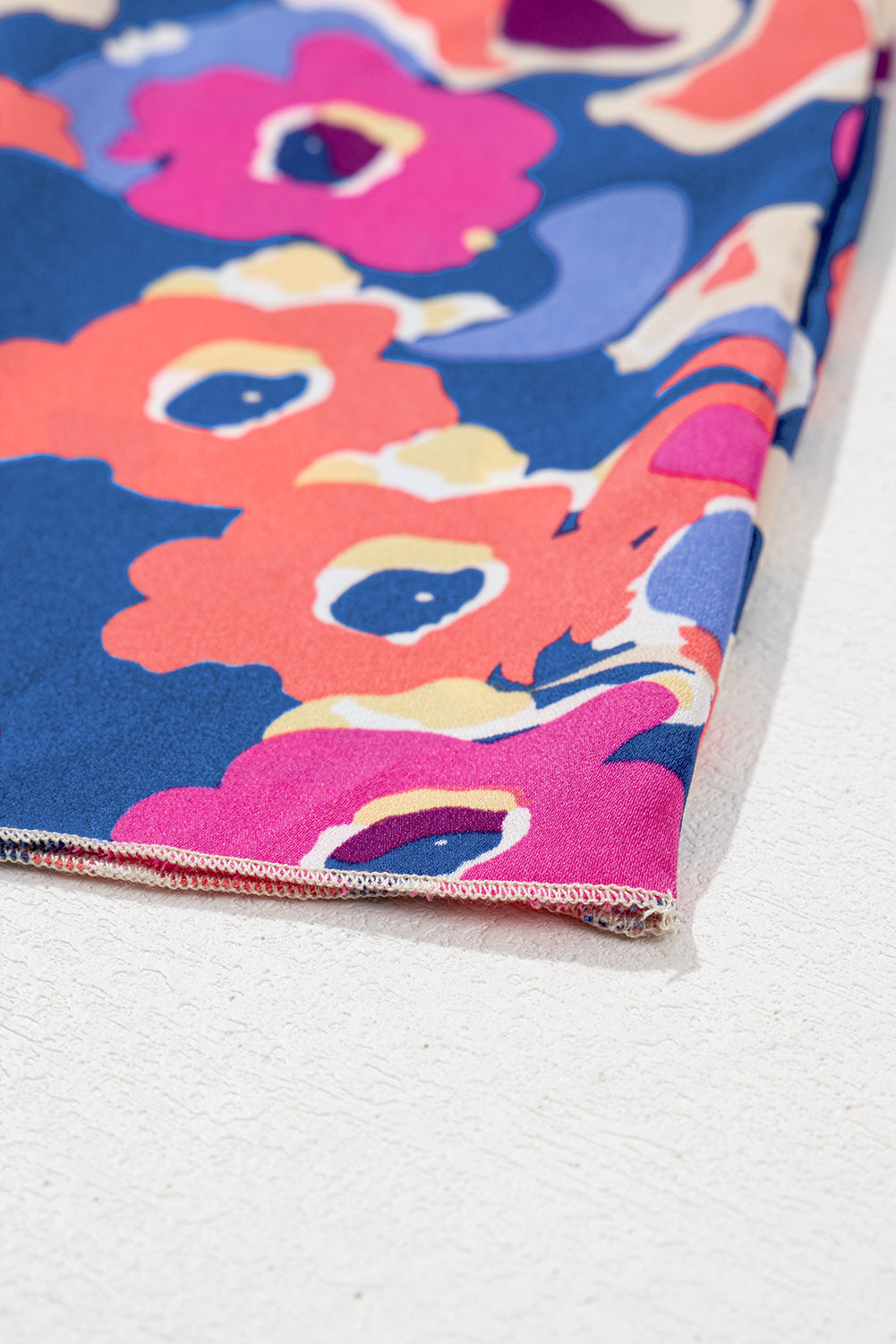 This plus size blue floral print mini dress enhances your personal style. Embrace a touch of femininity with elegant ruffled accents. Stay chic and comfortable with the trendy 3/4 sleeves and stylish mini length hem. Perfect for any occasion, this dress adds a touch of sophistication to your wardrobe.