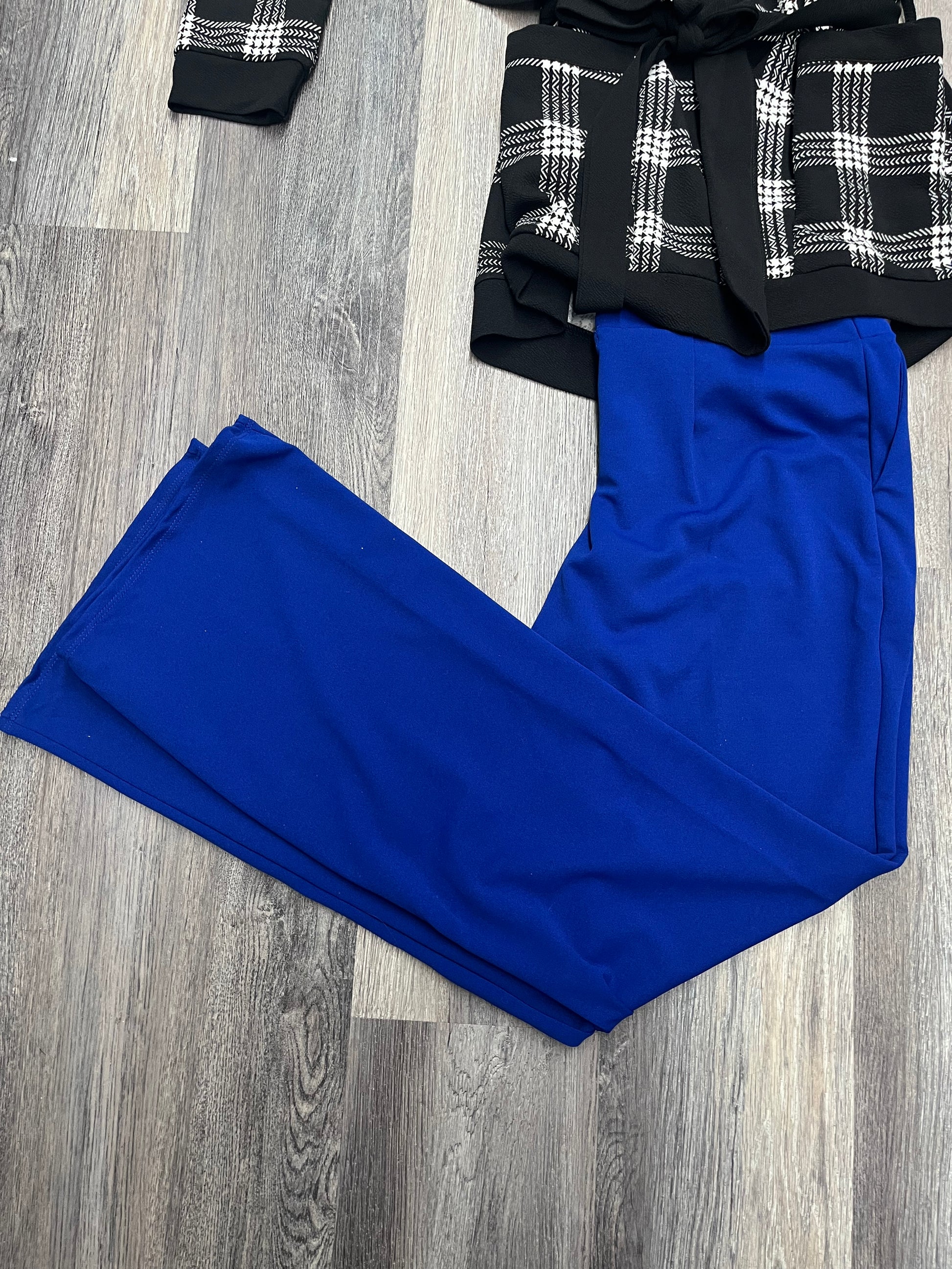 These plus size royal blue pants offer a comfortable and stylish option for any occasion. With an elastic waist and flattering fit through the hips and thighs, these pants provide all-day comfort and a sleek silhouette. The flare at the ankle adds a touch of flare and sophistication.