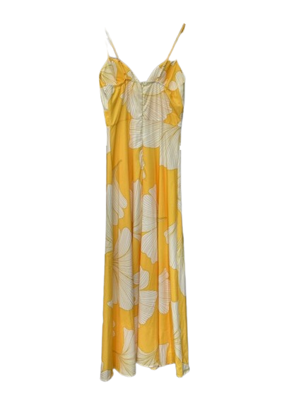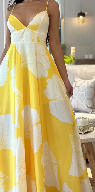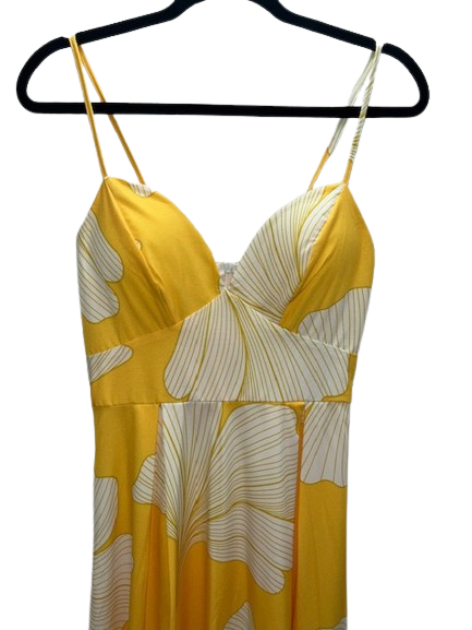 Introducing our elegant Yellow Floral Print Maxi Dress. This stunning dress features a yellow base with a delicate white floral print. The sweetheart neckline and fitted bodice accentuate your figure, while the high waist and flared full length skirt offer a flattering silhouette. Elevate your style with this beautiful piece.
